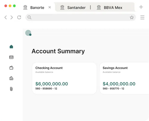 One platform to manage every bank account your business uses — in Mexico and Colombia